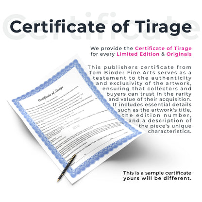 The image size is 22 5/8" x 34", and it comes unframed, and carefully shipped in a rolled tube. This masterpiece is part of an Arabic numbered edition of 950 examples, including various proofs and artist editions.